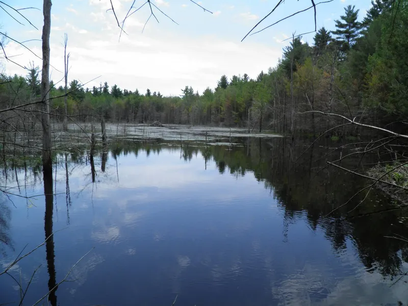 NYS forest land adjacent to Fort Drum Army Reservation for sale: This property is fully wooded with a diverse mix of hardwood and softwood tree species, predominately; sugar and red maple, yellow birch, black cherry, white ash, red & white oak, beech, hemlock, red spruce and white pine. There is a small stream that traverses the property through a wet meadow, its flow halted by beavers to form a small pond, a suitable rest stop for migrating waterfowl both spring and fall. Smaller wet drainages are found in pockets amid bedrock outcrops across the rolling terrain found here. A timber harvest was conducted on the property in 2015. The harvest resulted in an abundance of new tree seedlings and berry bushes, that provide nutritional staples for deer, bear, turkey and grouse, as well as numerous non-game species and song birds. Areas in which almost all trees are removed are considered...
