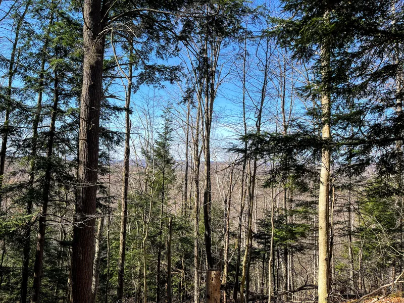 The land consists of a nice mixed forest with mature Pine, Hemlock, Sugar Maple, Yellow Birch and great mix of other northeastern hardwood trees. The property also offers a great mix of topography, with a flat plateau in the front portion that has a steep transition to the back portion of the lot. This creates an elevated shelf that offers great views of the Black River valley to the west.