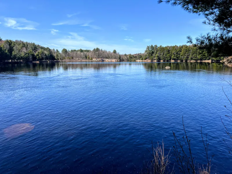 This 21-acre lot is truly one of kind: it offers wooded acreage with great access and just over 800 feet of waterfrontage. The lot is blessed with an elevated bank that overlooks the river and the reservoir below, this is great protection from highwater and the views are amazing. There is also a section of the property that is a separate Island and when the river is low, you can walk across the rocks to the Island.