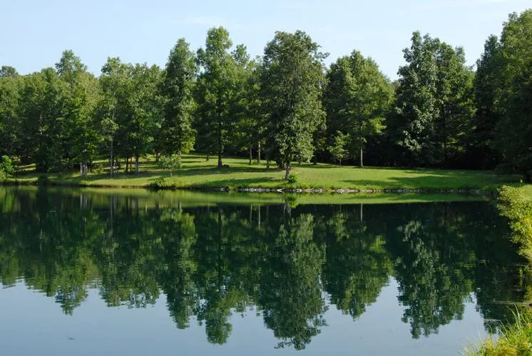 Private Cabin on the Banks of Unique Lake, perfect for guest home. Pastoral gently rolling land would be ideal for horses or organic farming. Good barn, near Natchez Trace Parkway