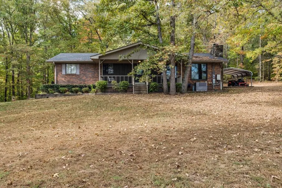 2 Car Carport on one side of the Home. Nice Deck on the back of the Home and small Patio. Driveway comes from the road all around to the back of the Home. Home nestled down inside tall mature trees. Home and Metal Building are both Generator ready. Metal Building has 3-phase convertor. 5-Horsepower Compressor. 30X40 Barn with Electric/Water/6 Stalls/Full Loft. 25X45 Metal Building has Kitchenette/Office/Half Bath/Septic and Generator ready - Could be converted to Living Quarters. Stocked Spring Fed Pond and Spring that runs through the property.