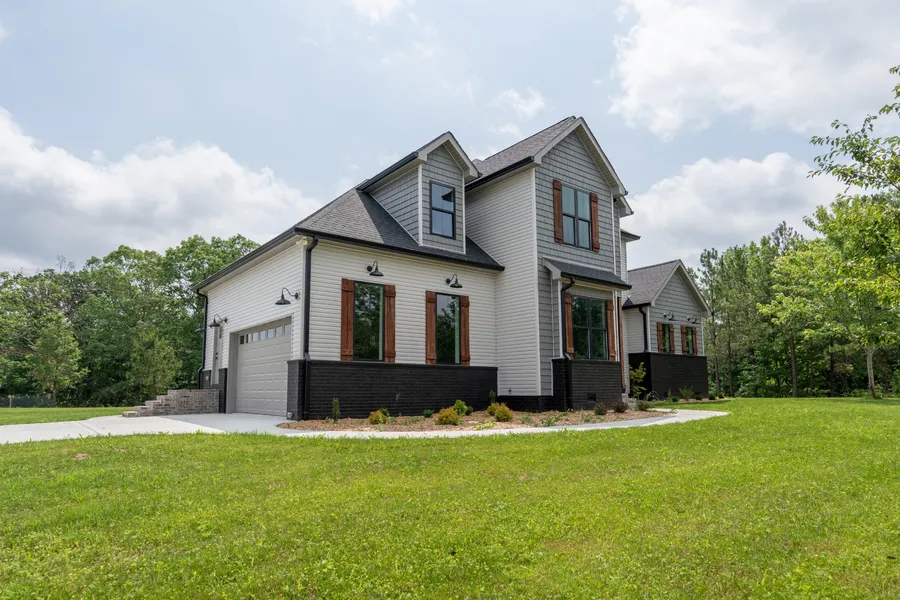Talk about curb appeal!This sprawling 2352 square-foot new build will surely be envy of all the neighbors! The exterior is flawless with its beautiful earthtone color pallet coupled with its perfect blend of brick, vinyl and natural woods. . The interior boasts 4 BR , 2.5 BA with open concept, granite countertops, vaulted ceiling in living room, gorgeous staircase, transoms above interior doors . The primary suite is located on the main floor with a huge walk in closet. A beautiful barn door leads to the en-suite bath that includes dual vanities ,soaker tub and shower. Upstairs you will enjoy the view overlooking the great room below with 3 more spacious bedrooms and 1 full bath. There is ample storage throughout the home as well as a large 2 car attached garage. All of this sitting over 1 acre on a corner private lot with a concrete drive!