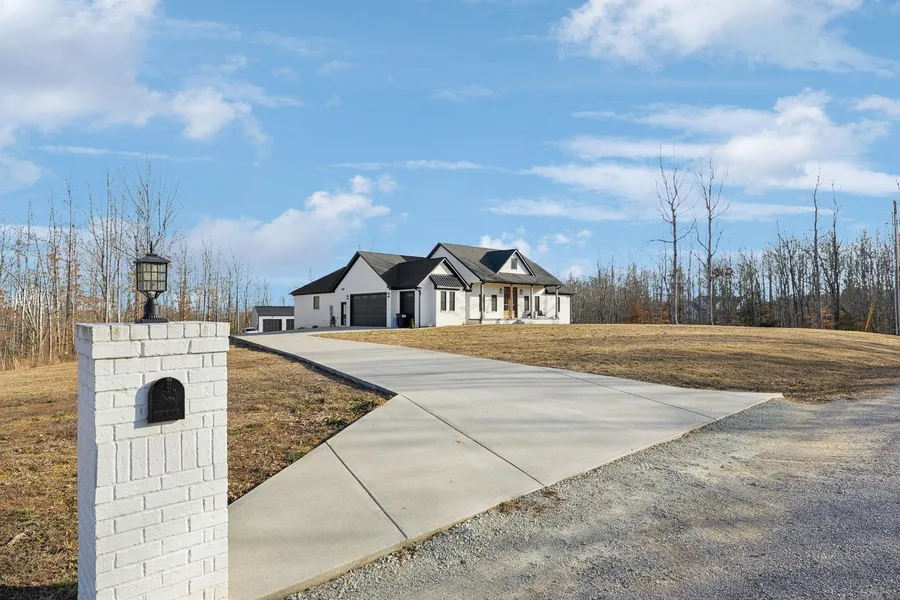 Feel the warmth of the home as you enter the large mahogany front doors. Enter into the large foyer to a spacious open floor plan that boasts of 11 feet tall ceilings in the great room with a large cozy stone tile fireplace with cabinets on each side. Easy access to the elegant kitchen that consists of quartz countertops, built in oven, island and spacious walk in pantry. Entertain in the dining area that consists of large built in cabinets. The primary bedroom consists of 2 vanities , large walk in shower, his and her walk in closets, and gorgeous soaking tub for relaxation. For the pet lovers there are built in dog amenities in the laundry area. Step outside into the world of relaxation and entertaining with a 24x20 covered area. Enjoy the beauty and the warmth of the gas log fireplace, swim in the 15x30 oval inground swimming pool or just relax in the 6 person hot tub. Adjourning is the 10x15 grilling area. Front and back porch areas consists of tongue and groove ceilings. Enjoy the 2 car garage and a golf cart storage attached to the garage. Continue on behind the house to a large 40x30 shop with concrete floors and electricity. Shop consists of 3 bays with 10' doors and 12' ceilings.