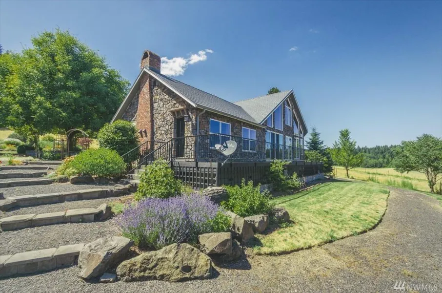 Picturesque landscape will take your breath away as you enter this 19 acre grand estate. High-end finishes and quality details throughout this completely custom home. Exterior walls are 11" thick, 100 yr warranty steel roof, custom hardwood floors, granite, slate tile, 100 yr old Cedar wood details, wood burning pizza oven, large pantry w/stained glass window - just a few of the unique details of this home. Adorable guest house w/kitchen, classic red barn, garden ponds, waterfalls and MORE!