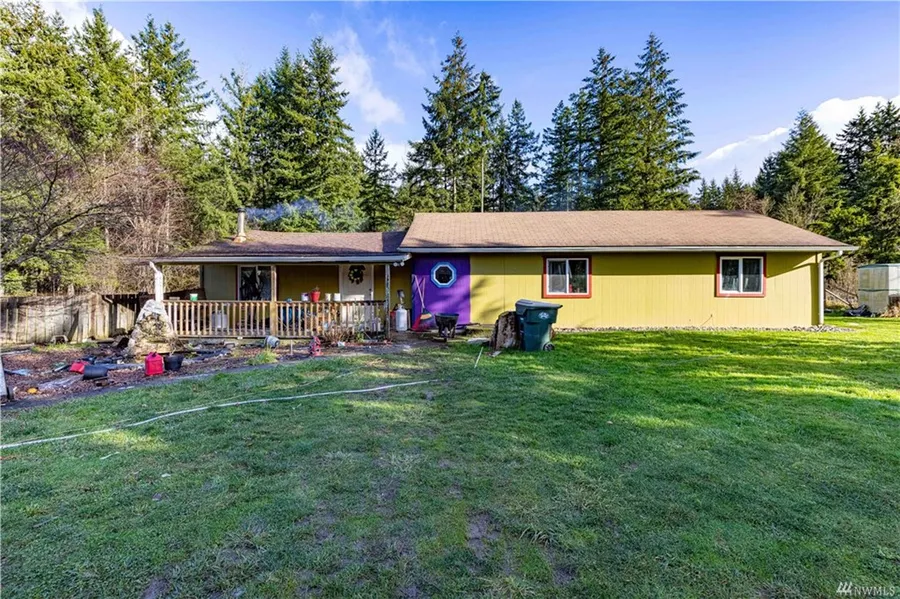 Nice open concept kitchen and living room with a wood-burning stove to help keep you toasty! There is plenty of room on this property for more outbuilding, gardens, or maybe some critters that you have been wanting! Minutes to shopping and I-5 access.