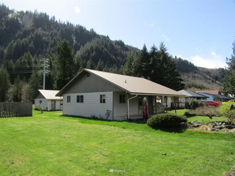 Sit on the covered front porch and listen to the fountain! This charming two bedroom rambler sits on a large lot at the edge of town. It is in solid condition and offers both a garden shed as well as a double garage with a work bench. The front yard boasts a beautiful water fall and the pond is home to over two dozen koi. In back you will find a small patio and room for your boat or RV and also a great garden space. Close to schools, shopping and medical facilities, and surrounded by a plethora of recreational opportunities.