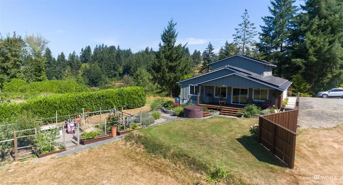 This one of a kind custom home has amazing features both inside and out. The open design has kitchen with gas range and large island counter, walk in pantry and private office space. The gas fireplace will warm you and the On-Demand system gives you unlimited hot water. A 15Kw solar array powers this house and keeps utility costs extremely low. The spacious downstairs bedroom opens to a luxurious bathroom with walk in closet. The oversized double garage also offers a 16x20 shop. Outside, step onto the large covered deck and enjoy your private drought resistant ecology lawn. Check out the fenced garden with fruit trees, drip irrigation and raised beds, plus sharpen your golf game at the chipping range.