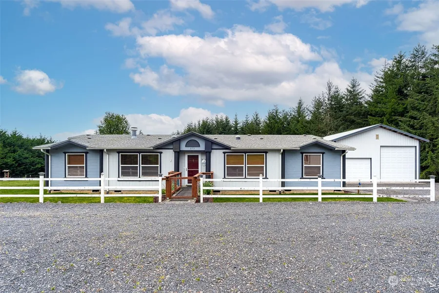 Beautiful Triple Wide Manufactured home on 2.6 acres. Includes 2 insulated shops: 24x36 & 30x50, equipped w/ 220 power. A 30x28 garage wired for generator, ensuring peace of mind. This charming home has a spacious primary bedroom w/ private sitting room, personal deck, & walk-in closet. Primary bath has a double vanity, luxurious garden tub & shower. The versatile layout encompasses formal living & dining areas where cherished memories can be shared. For those cozy nights, a welcoming family room awaits, complete w/ wood burning fireplace. Step outside, to embrace the serene backyard, featuring covered patio & a delightful water feature. Don't forget, plenty of space for RV, boat, toys etc. This inviting house yearns to be your new home!