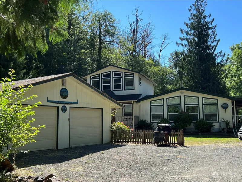 BIG PRICE REDUCTION! Listen to the music of the river at this beautiful home nestled on almost five acres. This property features a spacious two bedroom manufactured home with a large second story stick-built add-on. The island kitchen offers plenty of storage as well as a pantry and a dining room with a beautiful chandelier. The large upstairs room could be a spacious third bedroom or a bonus room for your projects. The double garage is at the end of the circular driveway and has an additional living space, which could be developed into a small apartment. Check out the gazebo and firepit overlooking the sparkling Tilton river and enjoy the shade of the wraparound porch. Located only 3 miles from downtown.