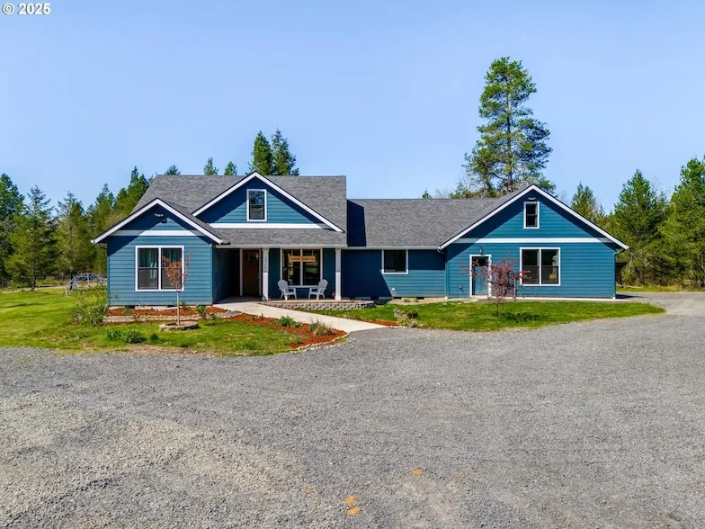 Price REDUCED! Gorgeous 5 bedroom 2 bath home on ten acres! Fall in love with the privacy as you drive up to this home. Spacious entry opens to living room, dining and kitchen. Entertain with ease. Huge quartz island, tons of counterspace and storage... and WOW... check out the walk in pantry! Love! Wood stove for supplemental cozy heat. Oversized primary on main with lots of natural light, walk in closet and classic primary bath. Two bedrooms on main with guest bath between them. Great for your family or company. Upstairs boasts 2 more bedrooms. Expansive laundry room/mud room for acreage land! And MORE! 3rd bathroom plumbed in the oversized garage for future competition. RV parking/storage or shop building. Fruit trees, open lawn and ready for your raised beds! Room to dream and stretch your arms! Hobby farm? 10 Acres only 7 miles from I5! Bring Your OFFER! Motivated Seller!