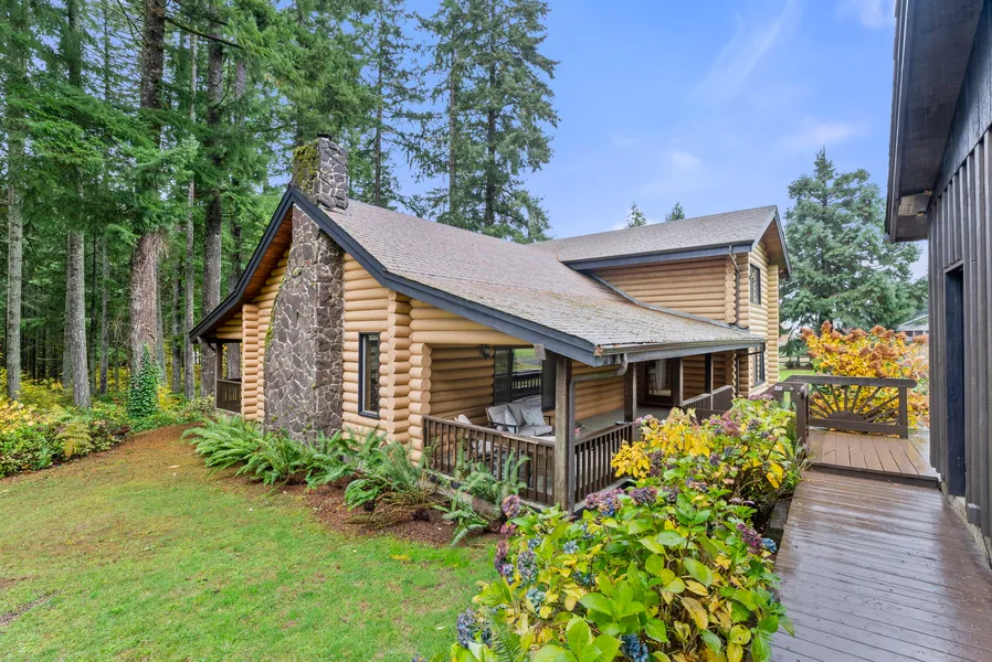 Escape to a slice of the Pacific Northwest in charming log home on 2.04+/- acres. 3-bedrooms, 2-bathrooms, with 2296+/- sq ft,. Updated kitchen and an open-concept layout, vaulted ceilings, and Primary bedroom is conveniently located on the main level. New LVP flooring flows throughout- this home blends rustic warmth and modern comfort. Upstairs, both spacious bedrooms with walls in closets, enjoy shared access to a full bathroom featuring an extra shower for added convenience. A woodstove insert keeps the home cozy on winter nights, while a heat pump provides efficient heating and cooling year-round. Relax under 1 of the 2 covered porches. Outside, 2-car detached garage plus a carport/pole barn outbuilding-ideal for additional parking, storage, or hobbies.