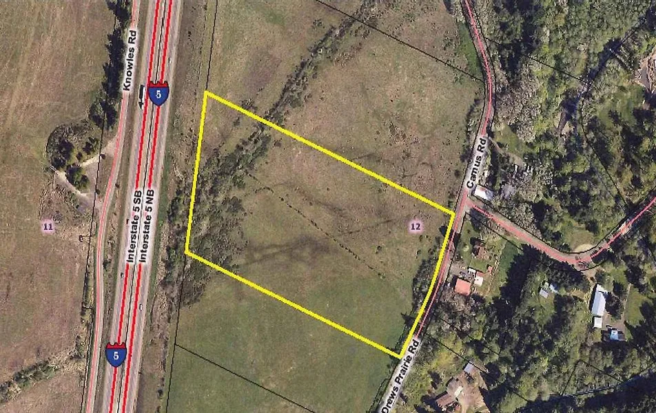 Exit #63 off I-5. East to Camus (approx. 300 ft). Right (S) to Drew's Prairie. Stay right. Properties on right (W) side of Drew's Prairie.