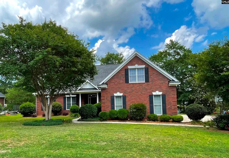 Beautiful all brick home on a pond. Welcome to Muirfield an all brick community with custom homes. This home features gorgeous pond views from the kitchen, living room and primary suite. The kitchen is stunning with a large island, tons of cabinets, hardwood floors and a large eat-in area with views you will love! There are 3 bedrooms on the main level and an oversized FROG is the 4th bedroom with a full bathroom. The family room is very spacious and features a fireplace and built-ins. Formal dining room and an office complete this home. Rinnai tankless hot water system, central vacuum and all appliances included! Move in ready in this sought after community. The lot is 0.64 acre with pond frontage. Huge 3 car garage with a storage space. Great location and award winning Lexington One schools, close to grocery stores, restaurants and The Country Club of Lexington.
