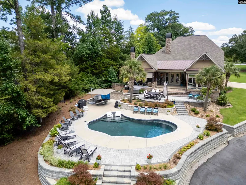 Welcome to 108 Will Wise Court! This gorgeous custom-built home on the shores of Lake Murray is sure to impress! As you enter the home you are greeted by century-old, reclaimed wood beams adorned with crystal-embellished chandeliers, perfectly blending rustic charm and modern opulence. The main level flows effortlessly, offering a thoughtfully laid out, open-concept floorplan. The great room boasts soaring vaulted ceilings with a stone fireplace, built-in shelving, and wall-to-wall windows. Steps away the open gourmet kitchen is the heart of the home with quartzite counters, a gas range with pot filler, and a large counter height island. The dining area, just off the kitchen and great room leads to a panoramic sunroom overlooking 125 feet of lakeshore. The beautifully appointed, main-level primary suite features a private ensuite with a walk-in closet, soaking tub, walk-in shower, and his and her honed marble vanities. On the second floor, you will find three additional bedrooms as well as two full baths. Ready for more? The backyard is an entertainer's dream! This lakeside oasis features a large, covered porch with a fireplace, gunite saltwater swimming pool, hot tub, and expansive patio areas. The professionally landscaped yard flows with ease to the private floating dock and shoreside firepit. Bonus...if you wish to bring the toys in off the lake, no problem! This property has a private boat ramp and massive detached boat garage, all on a gated, fully fenced 1.23-acre lot! This home has been extensively upgraded throughout with no detail overlooked! Additional features to note include engineered hardwood flooring throughout, lake drawn irrigation for landscape, professionally designed and installed landscape/hardscaping with automatic lighting, Generac whole home generator, Evolve water softener system, and professionally installed storage and epoxy coated floor in the garage. This unique Lake Murray property truly has it all! Call today to schedule your private showing!