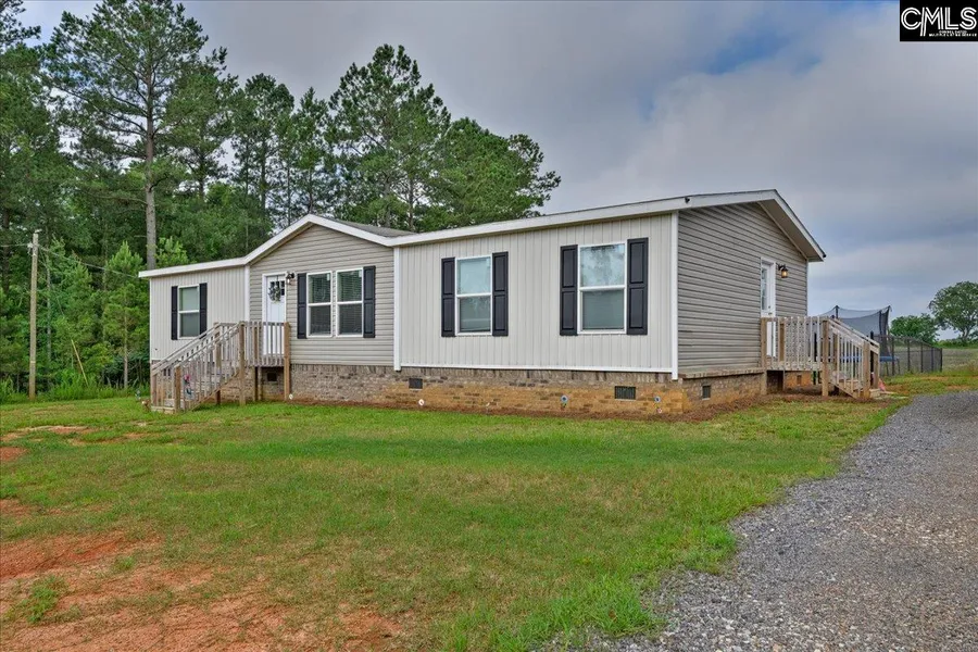 Country living on 7.3 acres with breathtaking sunsets in Lexington One School District. Enjoy privacy that backs up to a field with unbeatable sunset views. This newer home is a 2023 Clayton-built manufactured home which offers modern comfort with country charm. This spacious 3-bedroom, 2-bathroom split floor plan features a large primary bedroom with two closets, open-concept living area, durable vinyl flooring throughout, recessed lighting and a kitchen designed for both function and style. You'll love the large center island, ample cabinetry, dedicated coffee bar, and separate utility room. Step outside through sliding glass doors onto the back deck‹”perfect for your morning coffee or unwinding with a cocktail while watching the sun dip below the horizon. Brick underpinning adds a finished touch to this newer home, offering long-term durability and curb appeal. Fenced in backyard is convenient for pets and peace of mind when children are at play. Covered carport and outbuilding provide ample storage and protection from the elements. Whether you're looking for space to spread out, a peaceful retreat, or a place to grow, don't miss your chance to see this home today! Disclaimer: CMLS has not reviewed and, therefore, does not endorse vendors who may appear in listings.