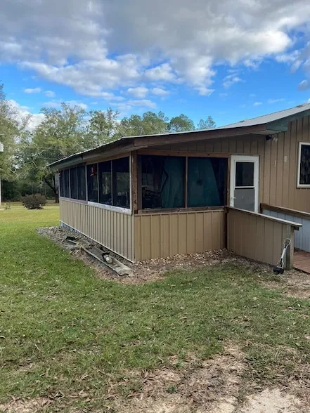 Welcome to this beautiful 1-bedroom, 1-bath wood-frame home, built in 2013, nestled on 2 full acres of land in a small town at the heart of the Apalachicola National Forest. This tranquil setting is perfect for those seeking comfort, privacy, and an outdoor lifestyle. Ideal for hunters and fishermen, the property offers close proximity to excellent freshwater fishing and is located on a dead-end road, ensuring peace and quiet. Designed with convenience and energy efficiency in mind, this home features thoughtful details throughout. Relax on the large, screened-in front porch, capturing the breeze and providing the perfect spot for unwinding after a day of outdoor adventures. Inside, the open-concept living, kitchen, and dining area is perfect for entertaining or everyday living, offering a cozy yet spacious atmosphere. The home is equipped with handicap provisions, including a walk-in shower, ensuring accessibility for everyone. Upgraded insulation throughout helps keep energy costs low, and the energy-efficient split-unit system guarantees comfort year-round. The property also boasts a large, oversized workshop, ideal for boat storage or woodworking projects, with motion-activated lighting to enhance practicality and security. A small shed with electricity provides additional storage, while a dedicated fish cleaning station caters to the outdoor enthusiast. For added convenience, the property includes camper hookups with 50-amp service, a septic clean-out connection, and water access perfect for accommodating guests or enjoying outdoor adventures. The land is beautifully landscaped with azalea bushes and offers plenty of open space, ideal for family gatherings, outdoor activities, or future expansion. Don't miss the chance to own this private, move-in-ready retreat with endless potential in a peaceful, nature-filled location.