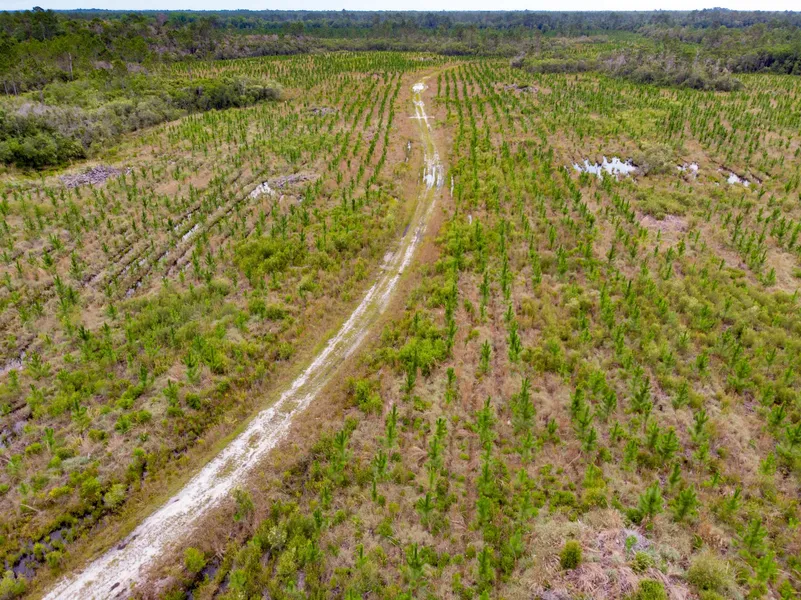 The land has good access throughout with an established road system. The property is a mix of upland and wetland, with 54.7 acres in planted slash pine, roads and open areas, and 70 acres in forested wetland. Wetland acres are forested in mature natural cypress, pine, and bay species. The majority of the planted pine stand was established in 2019 and the trees are currently in their 4th growing season; 18 acres of pine were planted in 1982. The stand is healthy and well-stocked, primed to provide the owner with immediate and future income from harvests.
