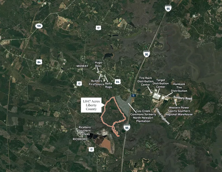 1,047 acres in Liberty County. The property is only 1.3 miles from E Oglethorpe Highway and Interstate 95.
