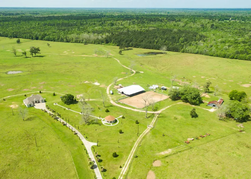 Seller Financing Available & AG Exempt! Gorgeous, Secluded & Private 85-Acre Cattle/Horse Training Ranch Surrounded by Natural Forests By Liberty That Did Not Flood During Harvey. All Brick Home 3508 sqft Custom Brick 3/2.5/2 Home has Recent Roof, Granite Counters, Brick Arches, High Ceilings, Marble Floors & 25' Long Covered Porch w/Gorgeous Views of Surrounding Natural Forests, Ponds & Pristine Ranches. Paved Walking Pathways Connect Home, 960 sqft Brick Gazebo & Horse Barn. 80'x100' Horse Barn has Metal Roof, 60'x100' Indoor Lighted Riding Arena, 15'x12' Tack Room, 15'x12' Feed Room, 4 Brick Stalls, Indoor Wash Rack & 120'x200' Lighted Roping Arena w/Chutes. 32'x42' Hay Barn has 60' Covered Cattle Feeders & 10,000 sqft Cattle Pen w/Corrals & Chutes. 960 sqft Gazebo. Cross-Fenced Pastures w/Jiggs Hay, Seasonal Creeks, 2 Stock Tanks & Cattle Guards. Pine & Oak Tree-Lined Perimeter Fence for Privacy. Brick Gate & Concrete Driveway. Excellent Hunting for Deer, Hog & Dove. 2 Water Wells, Aerobic Treatment System & 250-Gallon Propane Tank. Survey Needs Updating. Minutes to TX-90 & TX-99/Grand Parkway (Houston's 3rd Loop) which will span 180+ miles when done (See Map). 30 Miles to Sam Houston Tollway. 38 Miles to Bush Intercontinental Airport. 45 Miles to Houston. Livestock & Equipment Negotiable. Buyers Need Pre-Approval to Schedule Showing w/24-Hour Advanced Notice. Contact Heidi Allbritton to Show & Capital Farm Credit for Loan Approval! See Attachment A - Property Details. Watch Drone Video!