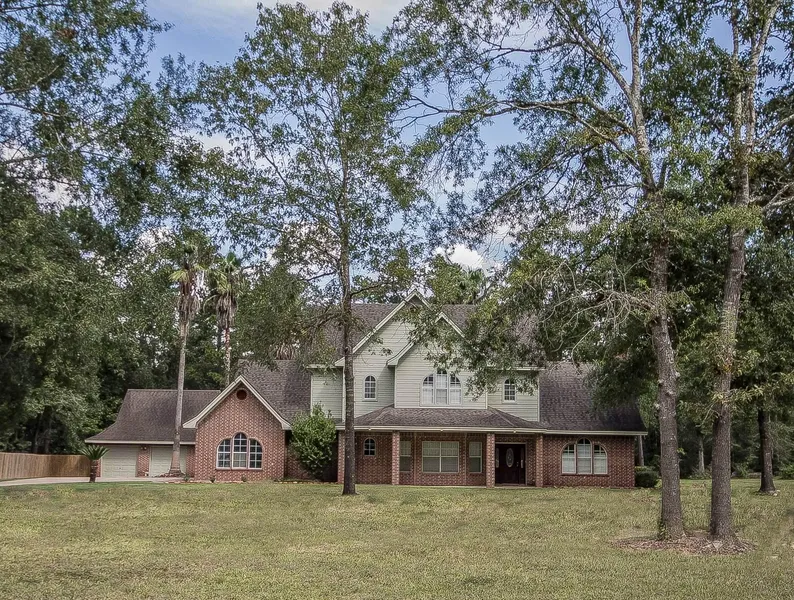 Country living on corner of FM 1008 and CR 631. Custom built 2 story. Great kitchen w plenty of cabinets. Utility room has a laundry chute from upstairs. Breakfast area overlooks fenced pool area. Living room has propane gas log fireplace. Study w built-ins. All bedrooms upstairs. Great master bath and closet. 2 car detached garage and 2 car attached garage.