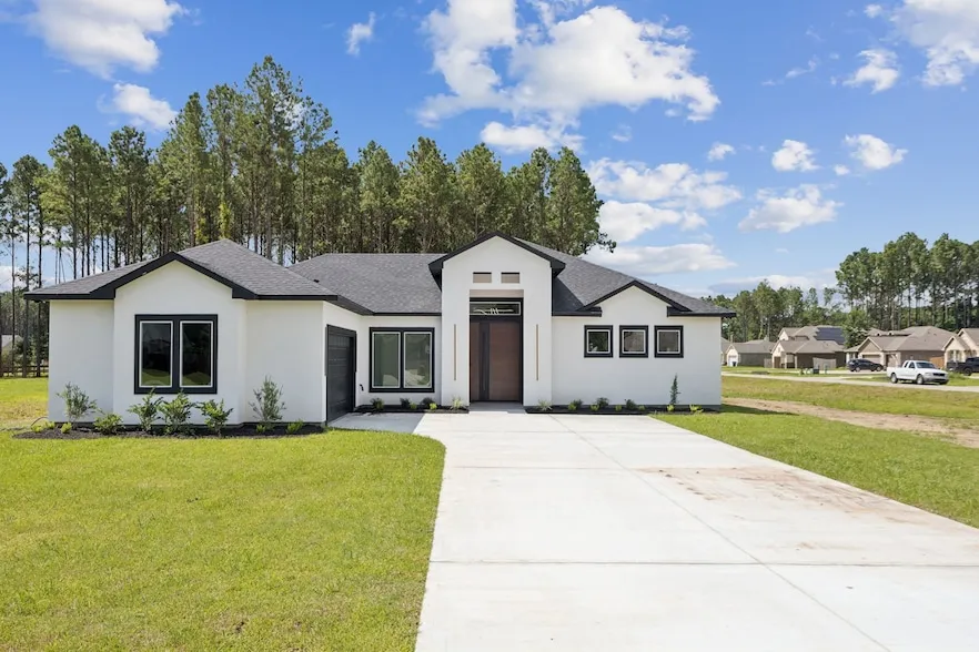 This beautifully crafted 4-bedroom, 2-bathroom home sits on a generous 1-acre corner lot and features a sleek stucco exterior with clean, modern finishes throughout. Built by a custom builder, it offers thoughtful design details and a layout that feels unique and well-planned. Inside, you'll find plenty of storage, a bright open-concept living space, and stylish touches that make everyday living feel elevated. The covered patio with an outdoor grill and sink makes this home perfect for entertaining or relaxing with family and friends. The long driveway is always an extra plus when hosting! Located in an area that s growing rapidly with new communities and shopping centers, this neighborhood still offers a sense of peace and quiet giving you the best of both worlds. With the opportunity to add a pool, workshop or even an additional apartment on this expansive lot you have plenty of options to make it fit you exact needs! Schedule your tour today!