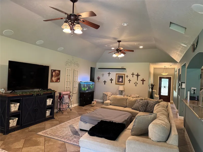 Beautiful country home on 10 wooded acres. Built for entertaining, kitchen features two Jenn-air gas ranges, large refrigerator/freezer combo and walk through butler pantry with lots of storage. Kitchen has large island with sink and room for bar stools. Kitchen also features custom pull out spice racks and many drawers and cabinets for optimal storage solutions. Spacious living room is designed for gathering and features 10 foot ceilings. Large master bedroom features raised ceilings and master bath includes large walk in closet with built in drawers and shelves for maximum storage, a whirlpool tub and separate shower. Second bath features shower and third bath has shower/tub combo. Home has new roof, new AC units, and dual tankless water heaters. A porch surrounds the entire home and opens onto wooded acreage in the front and rear, including a stocked fishing pond. Watch deer and other wildlife from the porch. Zoned to Tarkington schools. A timber tax exemption is available.