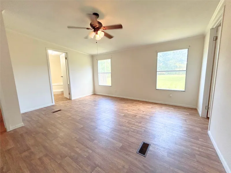 This charming 3 bed, 2 bath double wide home sits on just over 1 acre in Tarkington ISD with No Flood Plain! Enjoy privacy in a peaceful country setting in North Cleveland. The open floor plan offers a spacious living room, ample cabinets, and family dining space. Situated on a cul-de-sac, the large cleared lot ensures no through traffic. With no HOA or restrictions, this property boasts a water well and aerobic septic system. Relax on the huge covered deck in the fenced front yard. Don't miss the chance to make this beautiful property your home!