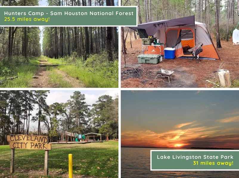 In terms of location, the property sits approximately 10 minutes from Cleveland, where you’ll find grocery stores, dining, schools, and basic services. Humble and Kingwood are about 35–40 minutes away, offering major shopping, hospitals, and entertainment. Downtown Houston is roughly 60–65 minutes away, making this a viable option for those who want rural living without completely disconnecting. Outdoor attractions like Lake Livingston State Park are about 40 minutes away, while the surrounding Sam Houston National Forest area provides endless opportunities for hiking, fishing, and recreation.