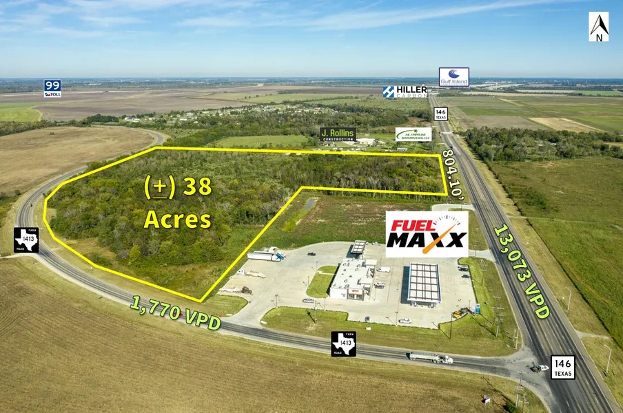 * 38.23-Ac wrapped corner with Excellent Frontage Hwy 146 & FM 1413