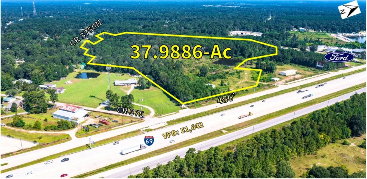 +/- 37.9886 acres of land in high growth area of Cleveland/Splendora. Property has excellent frontage with approximately 486 feet of land fronting US Hwy 59. Easy access to Hwy 105. Property has alternate multi-access through neighborhood – CR 3750 N. 3 Phase power available on site. Ideal use for property include industrial, RV, mixed-use, gas station and retail. Nearby landmarks include Demontrond Ford, retail such as Checkers and Fuel Maxx gas station and industrial including Mustang CAT, Jeff Martin Auctioneers and J-W Power Company. Unrestricted can be commercial or residential (as per owner - please verify).