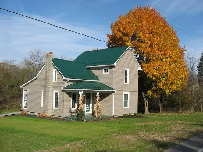 This 1900 farmhouse has been almost totally redone -- with charm intact, and it‘s really, really sharp! New: roof, siding, windows, floors, kitchen, bathroom, electric & plumbing. Tall ceilings on main level, large dining room, kitchen with Corian counters, stainless appliances, wood floor. Loft area and two bedrooms upstairs. Full basement with mechanicals, laundry, storage, woodburner. Nice view of woods and stream behind the house, and the land backs up to wooded acreage. Approx. 5 acres of farmable land. The location is an easy drive to Newark, Johnstown, Granville, Utica. Very nicely done!