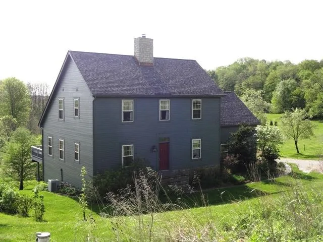 Beautiful and peaceful, country setting on 2.01 acres. Attractive stone front walk, leading into this wonderful saltbox style home. Features a beamed ceiling in the great room and handsome Colonial stone fireplace with wood mantle, can be gas or wood burning. Stained woodwork throughout the home. Wide board oak floors downstairs. High quality maple cabinets in the kitchen and bath. Updates include, newly painted exterior and deck in 2013. New roof in 2012 and new garage door opener in 2012. Enjoy the beauty of this nicely landscaped yard with the trees, bushes, perennial flowers and plants. Awesome views of the one acre, native prairie flowers in the backyard and conservation land beyond.
