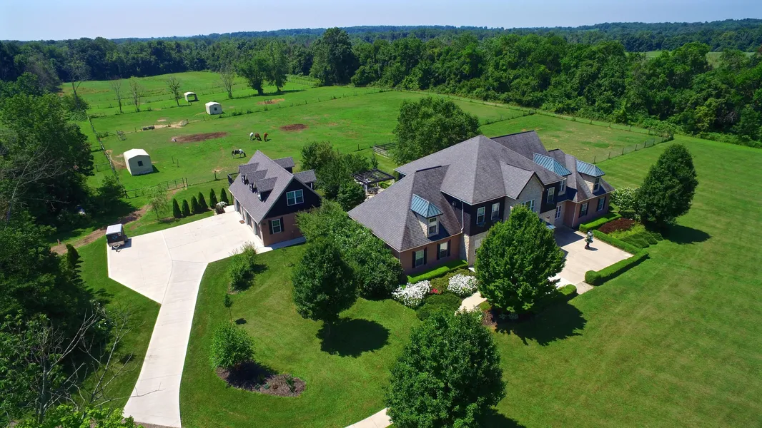 Expansive spaces for you, your pets & your horses. Custom-built 5,700+ square feet will surely impress: marble, in-laid hardwoods, iron railings, slate, cherry cabinetry, multiple laundry centers, 6 bedrooms, 5.5 bathrooms. Attached dog kennel with private run is convertible to additional living space. Landscaped outdoor living spaces. 3-bay carriage house W/full apartment & additional outside bathroom. 15 horse stalls, tack room, wash stall and indoor arena are found in two barns along with an outdoor sand arena and multiple other outbuildings.