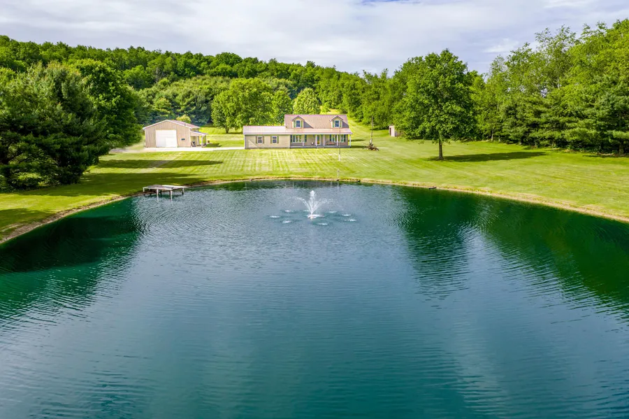 Serenity! Over 7 acres of pristine property awaits you! The fish in the pond have been fed every night. The mechanical's of the home have been maintained and updated! New metal roof 2010; great room addition 2013; 1500 sq ft pole barn with a 14' door was constructed in 2012; the master bath and 1/2 bath were updated with natural stone. The views from the living room and master bedroom overlook the pond. There are a couple acres of hardwood on the back side of the property. The partial basement offers room for a work out space, an office and a room w/ a sink. The furnace is in the 5' crawl space. This home comes with stainless steal appliances. The great room, kitchen eating space and living room offer a beautiful open concept. This could be the next place you call home! Schedule today!
