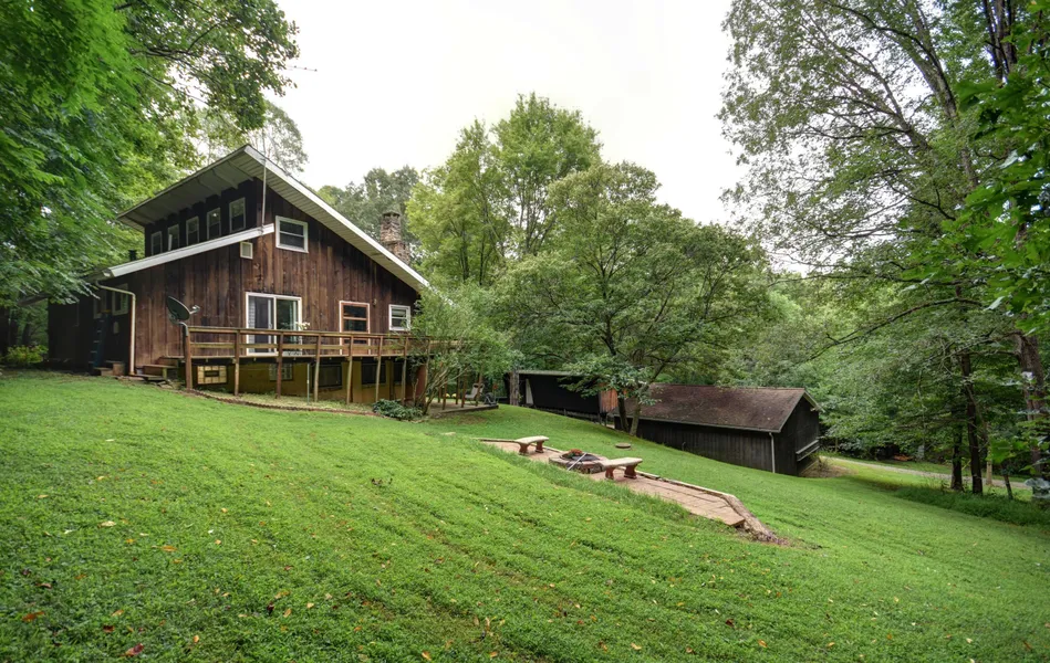 Retreat to the best in social distancing! 2 parcels to hunt, on 51 Acres,yet minutes from Rt 79/Rt 161 for easy commute anywhere! Open Skylit Floor plan with gorgeous stone fireplace, hidden door & exposed beams. Kitchen hosts tons of storage & counter space with custom booth seating. 2 access doors off upper level to large deck with built in seating.Brick patio ready for open fire pit roasting. 2Br/2.5Baths with loft & LL flex spaces for possible 3/4 bedrooms. Outbuildings include a Pole barn, 2 car garage, 3 carports, a Quonset hut, & Bunk House with electric. LL walkout has rec room, pantry, flex room with 2nd fireplace, bedroom & full bath. All mineral rights/royalties convey, lower parcel includes site for single wide trailer with water/septic/electric. AirB&B it! USDA Zero Down pymt