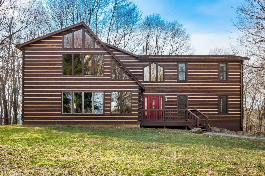 This unique, secluded log home is nestled between city park land and a private farm that provides privacy and peace. This elevated wooded lot has commanding view of both Heath and Newark. This energy efficient home has so much to offer! Floor to ceiling windows, large country kitchen with granite counters ,exposed beams, vaulted ceilings with study/loft, newly renovated bath w/ walk-in shower stall and double sinks, wood floors throughout, new doors and windows. Heat your cabin with the traditional gas furnance (2016) or use the external wood boiler to not only heat your home and garage but your hot water tank too! Outside, the cabin logs have been recently stained and sealed, new 6' gutters and downspouts. In the summer enjoy the Huge elevated back deck! sold as is.