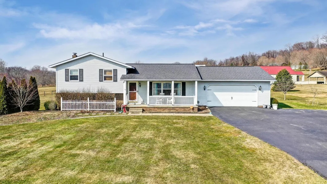 Country living at its finest but not too far from town. Enjoy the huge yard, the established garden space and the wooded area with the flowing stream. This is a very nice 4 bedroom family home situated on 6 acres of land that can be just about anything you want to make it. This split level has 4 bedrooms, 2 baths, beautiful kitchen with island and all the appliances, dining room, living room with view of the enormous front yard, family room with pellet stove, huge laundry room and enclosed patio. There is an attached 2 car garage with plenty of storage and/or work shop space plus a detached 24' x 30' workshop/pole barn. Don't hesitate, this won't last long.