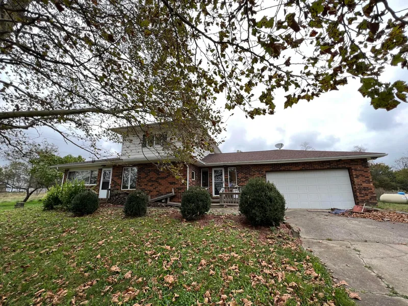 Two-story house with three bedrooms, two full bathrooms, inground pool, two storage buildings, all on 11.69 partially wooded acres. Two-car attached garage with attic. House features living room with wood burning stove, big eat-in kitchen, main floor bedroom, family room, enclosed front porch, two bedrooms upstairs, basement, and back porch. One storage building has metal siding and the other building has vinyl siding and a concrete floor. Fenced backyard. Property is being sold as-is.
