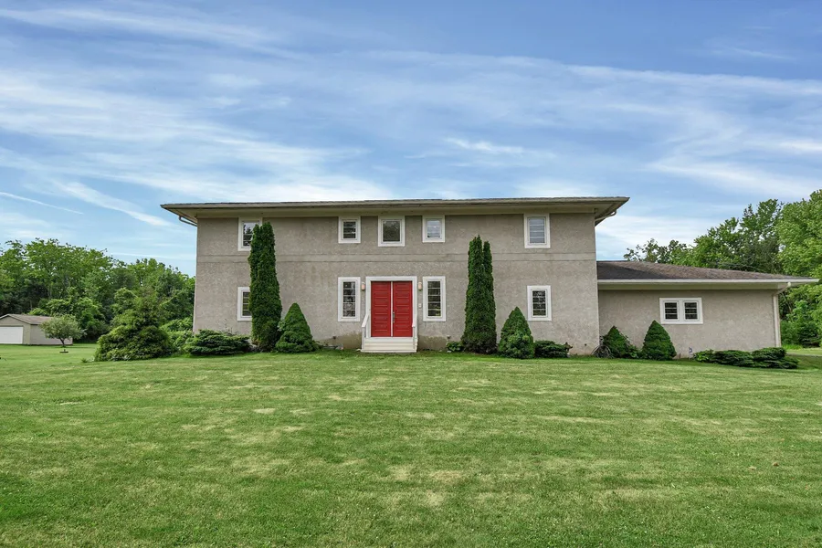 Custom built home on wooded 5 acre lot! Beautiful bamboo floors throughout. Spacious great room with vaulted ceilings. Dual fireplace between master and family room. Main level owner's suite with walk-in closet (with attic access), shower, soaker tub and bidet plus walkout to the deck. Huge dining room perfect for family dinners. Stainless steel appliances, double oven, gas cooktop and warmer. Two bedrooms with jack and jill bath upstairs. Huge open basement features theatre room perfect for movie nights! Basement walls are offsite poured 5000+ psi concrete at the height of 10 feet. Completely wired for sound. Central vacuum. Oversized 2 car garage is heated and insulated and has 240v outlets for range and vehicle charging. Amazing outdoor space with Brazilian wood deck and stocked pond!