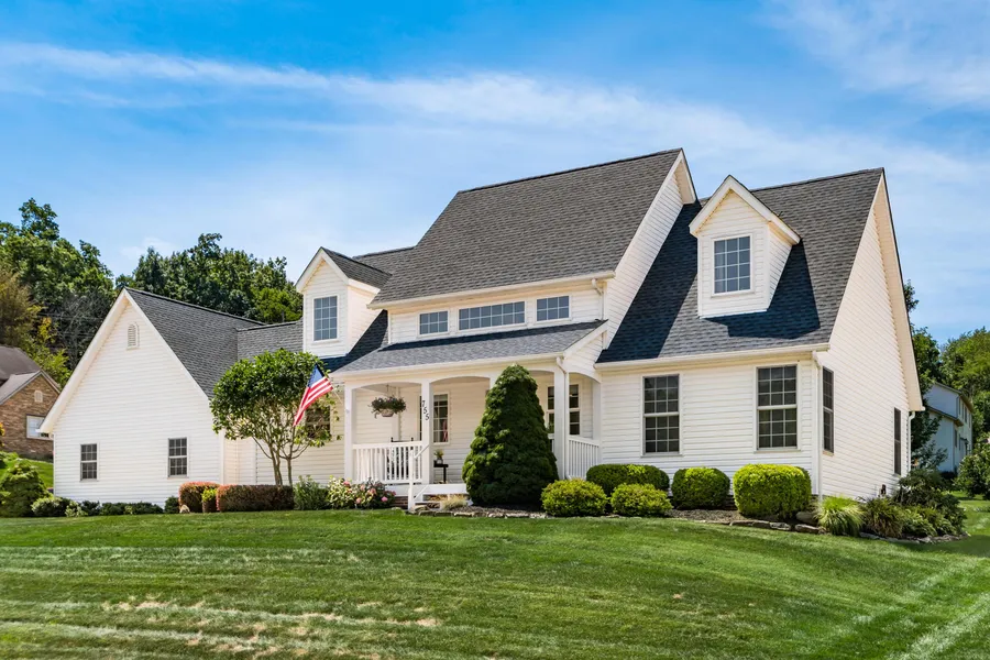 This home is located in The Woodlands in Heath. Home has been well maintained and sits on a corner lot with beautiful patio in the back. Hot tub on patio conveys to new owners! Front porch is very inviting to just sit and relax. Porch is composite, so it is maintenance free! Landscaping is beautiful as well. Inside you will find black SS appliances that are 1 1/2 years old, with a large kitchen and plenty of cabinetry! First floor laundry. Primary bedroom is on the first floor with two large walk in closets and full bath. Home also offers a 3 season room for relaxing evenings! Two nice size bedrooms upstairs with full bath. Open staircase gives way to beautiful light throughout the home. Nice 3 car attached garage with man door! Full basement that is plumbed for addl' bath.
