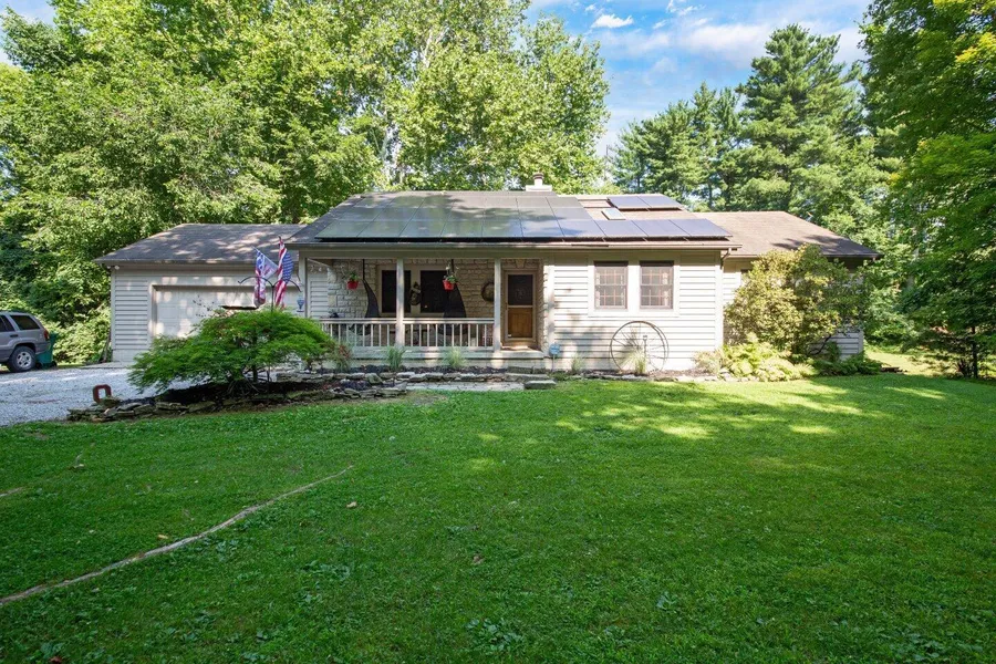 This gem snuggled in the woods is a 5 bed 3 bath home with a 2 1/2 car attached garage, additional 4 car detached garage with car lift, pond, Koi pond, stone fireplace, wood burner, 21 solar panels, upstairs and downstairs laundry hook ups. The house has been remodeled for taller people and includes granite countertops throughout. Enjoy the built in hot tub and live edge bar in the 4 season room or walk out on the deck overlooking the pond, flowerbeds & nature. This house has a walkout from the game room & storage galore! Newer (5 years old) aeration system on Septic. AC unit, furnace & hot water tank are also less than 5 years old. Sq. footage is 1,820 w/finished basement of roughly same size = total living space approx 3,500 sq ft. BRAND NEW carpet in master bedroom 5 mins from Intel!