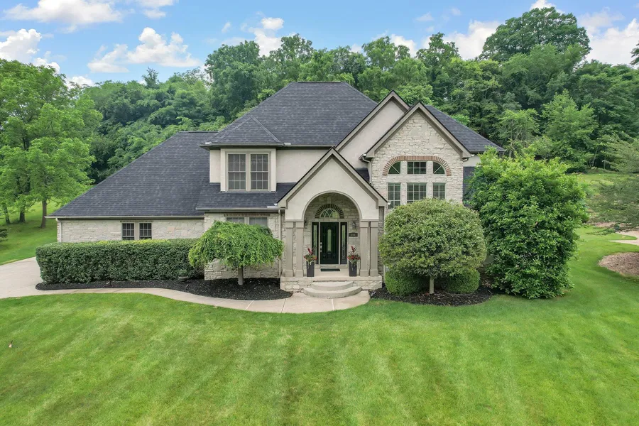 Stunning custom built home in beautiful Bryn Du offers 4 bedrooms, 4 bath with almost 4000 sq ft sitting on a pristine manicured 1.18 acre lot. The peaceful back yard has 2 stone patios with water feature. The 1st floor primary with en-suite has plenty of space and a cozy double sided fireplace shared by the Great room, which is adorned with 20 ft ceilings and massive custom windows. The home has 6'' Walnut plank and Maple flooring with 10 ft ceilings throughout. The impressive executive office was Amish built with Alder Wood. Its easy to entertain in the kitchen with stainless appliances, a breakfast bar, eat-in dining and a private dining room. The curved staircase leads to an open upper floor with 3 bedrooms, 2 full baths, a bonus room and a separate staircase to the 1st floor utility.