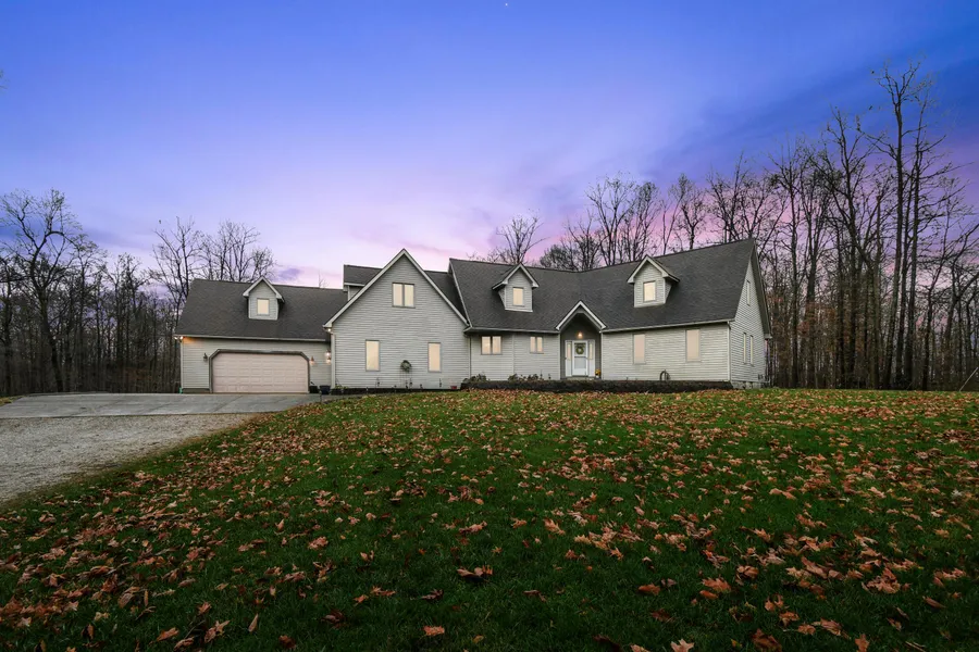 Beautiful property and large home with so many possibilities. The home sits on a partially wooded 7.11 acre lot with 2 ponds. It has 3 bedrooms, 2 full bath with laundry on the main floor and several additional rooms and a bath on the upper floor. There is added space above the garage that can be finished into great bonus space. This unique home needs some updates and finishes. Situated in a great location on a quiet cul de sac.