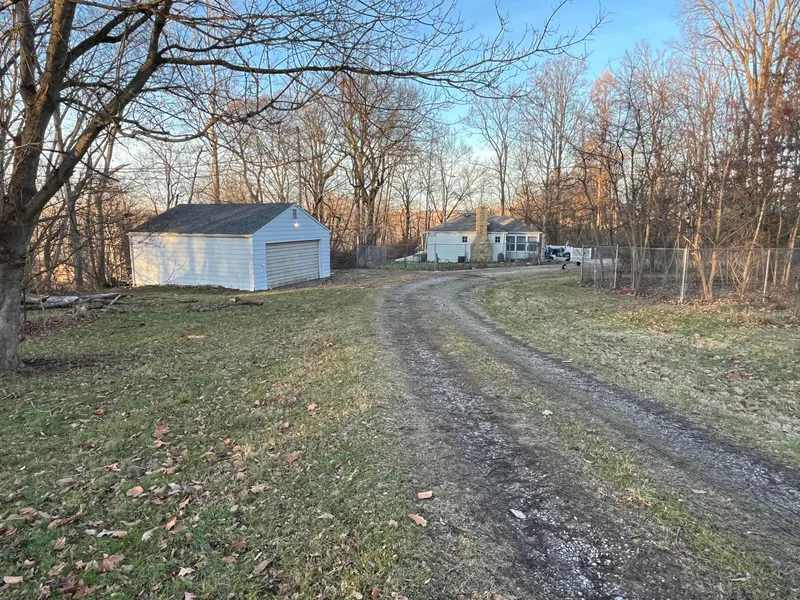 Desirable home on 4.68 secluded acres in Heath! Nice 4 possibly 5 bedroom, 2 full bath 1 story with an enclosed porch/ 3 seasons room & in home office/den. Beautiful scenery on a wooded ravine lot. Detached 2 car garage & clean basement for plenty of storage.
