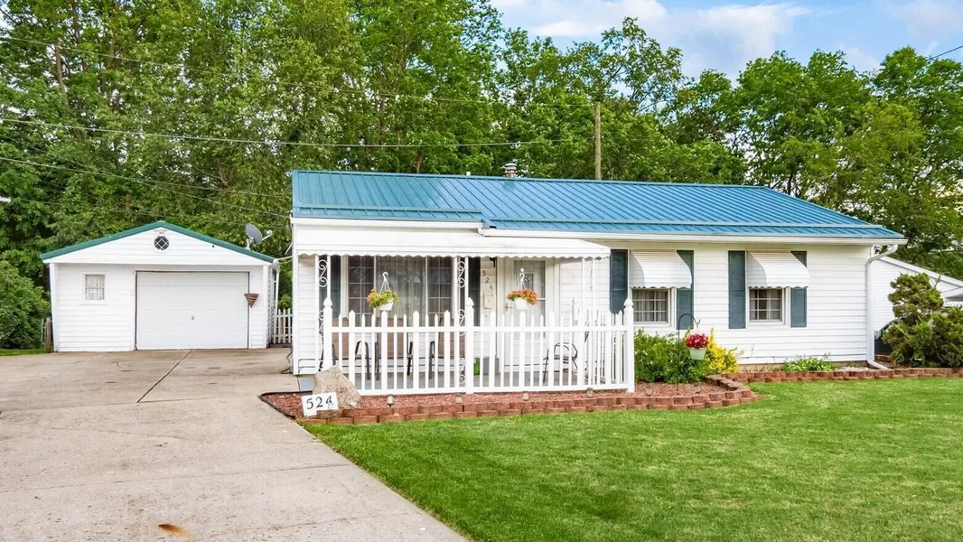 This four-bedroom ranch home has 1,357 square feet, a garage, and is located in a neighborhood in Newark's south end in the Newark City School District. The home includes: a living room with newer carpet, an eat-in kitchen with a refrigerator, gas stove, main floor laundry with washer and gas dryer in the kitchen, a family room, and one full bathroom. A metal roof was installed on the house and garage in 2023. There are also replacement windows. There's a covered front porch and a covered back porch. The backyard is partially fenced in. The garage has room for one vehicle and extra space for storage. There is also a storage shed. Seller is offering a 14-month home warranty.
