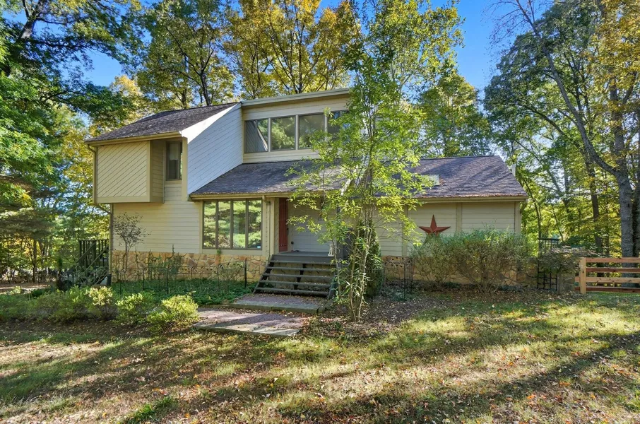 This beautiful contemporary-style home sits on a cul-de-sac with a full acre, offering scenic views from every window. A charming brick walkway leads to the front entrance, welcoming you into spacious, light-filled living areas with NEW flooring throughout. Other updates include a NEW Furnace and NEW Smart appliances, including a refrigerator & dishwasher. The heart of the home is the vaulted great room, featuring a wood-burning stove and access to the expansive deck; perfect for entertaining or relaxing in a peaceful setting. The main-level primary suite combines comfort and functionality, offering a gas fireplace, deck access, a walk-in closet, and an attached full bath. The sizable eat-in kitchen includes ample cabinetry and a center island, while the foyer and formal dining room. Convenient main-level laundry adds to the home's functionality.