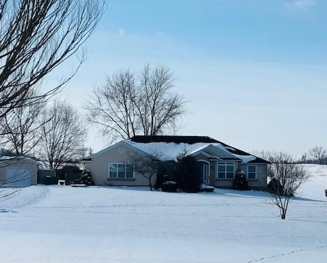 Spacious ranch home offering 2,600 sq ft on the main level, situated on nearly 2 acres. The open-concept layout features a great room with gas log fireplace that flows seamlessly into the kitchen, complete with island and all appliances included. The main level also offers an office, formal dining room, laundry room, and three bedrooms, with a possible fourth bedroom. The primary suite includes two large closets and a full bath with double vanity. The lower level features a partial basement and partial crawl space, with potential to finish, plus a half bath already in place. Enjoy outdoor space with a fenced backyard, attached garage, and an additional outbuilding equipped for pet lovers. A rare opportunity offering space, functionality, and convenience.