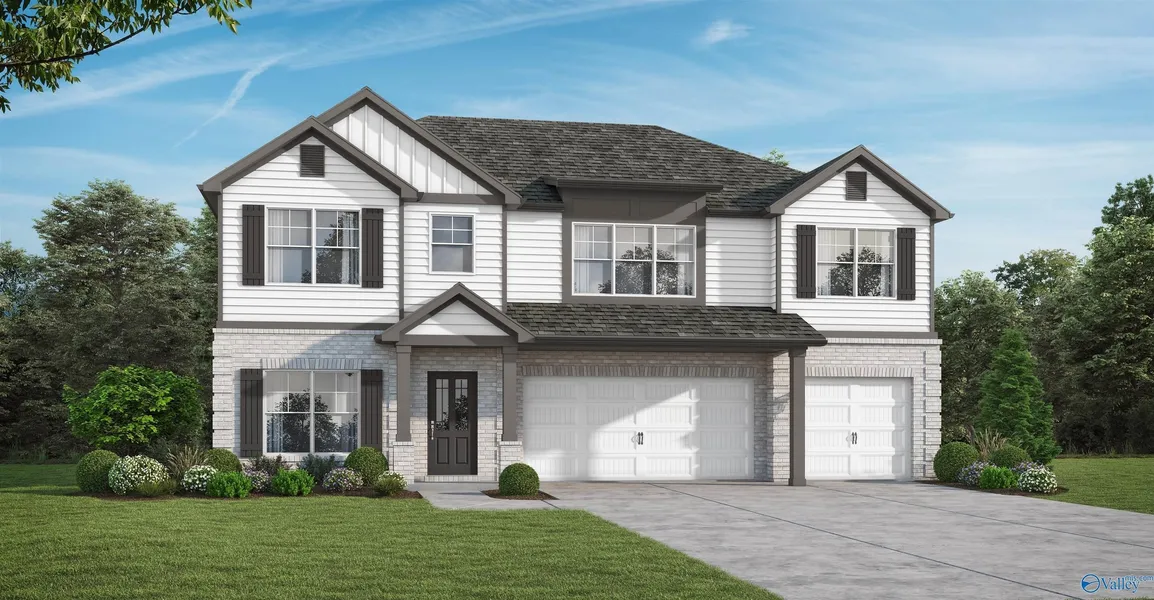 The Ramsey II. Gather around the quartz island in the kitchen to share appetizers & stories about your day. The dining room with its coffered ceiling opens conveniently to the kitchen & breakfast area which seamlessly flow into the family room. Step outside the family room to the covered porch & put some food on the grill. Retreat upstairs to your primary suite with trey ceilings & sitting area. Enjoy a soak in the tub in your spacious bathroom. A huge loft, 3 more generously sized bedrooms with trey ceilings & laundry room on this level. 1 bedroom & full bath on the first floor. Covered Porch & 3car garage. Photos are of similar home, options may not be included price.