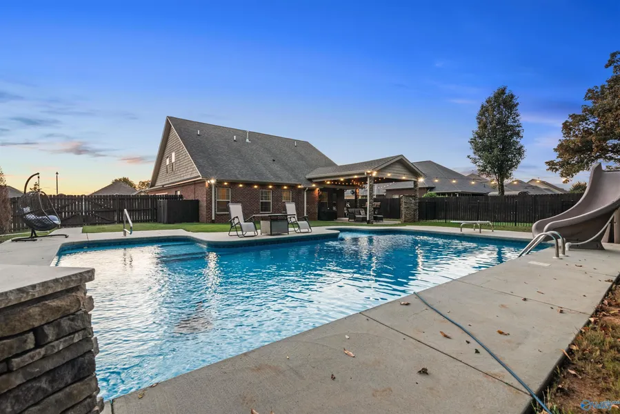 Indulge in luxury living at this meticulously upgraded home with a heated saltwater pool, outdoor fireplace, and pet-friendly amenities. Custom details such as trim work and accent walls add sophistication, while hardwood floors and a stacked stone gas log fireplace provide warmth. Trey ceilings enhance the Formal Dining, Breakfast, and Master areas, alongside a butler’s pantry. The open floor plan effortlessly flows, connecting the kitchen with granite countertops and custom cabinets. Additional features include a 3-car side entry garage, 220V outlet for electric vehicles, and a full irrigation system. Embrace a lifestyle of elegance and comfort in this exceptional residence.