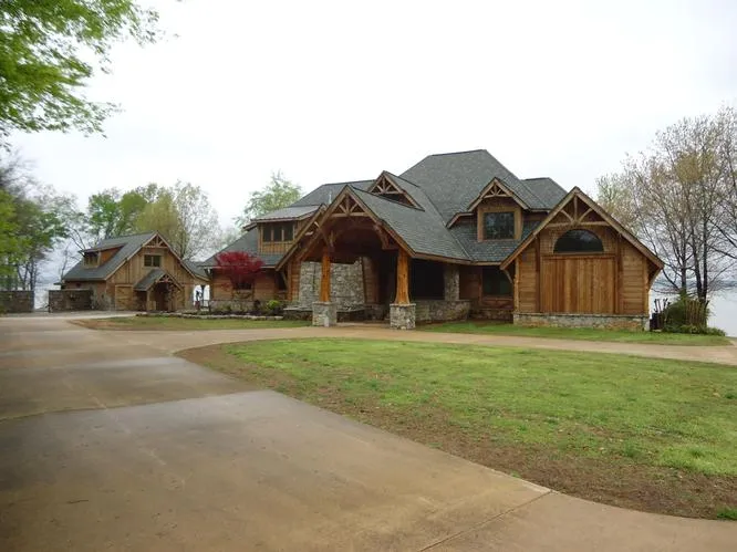 Riverfront estate with 320 ft of frontage on the Tn River and easy access to Decatur, Athens & Huntsville. Grand entry opens to foyer leading to 2 story great room w/stone fireplace and wall of windows facing river. Master suite, study, and kitchen on main floor. Basement has full kitchen, family room with fireplace, bar for entertaining, 3 br, 2 ba, and screened porch. Curved staircase to 2nd floor with 3 br and bonus room. 1760 sq ft guest house. Special financing is sill available to well qualified buyers.